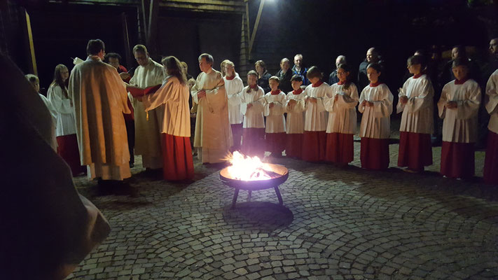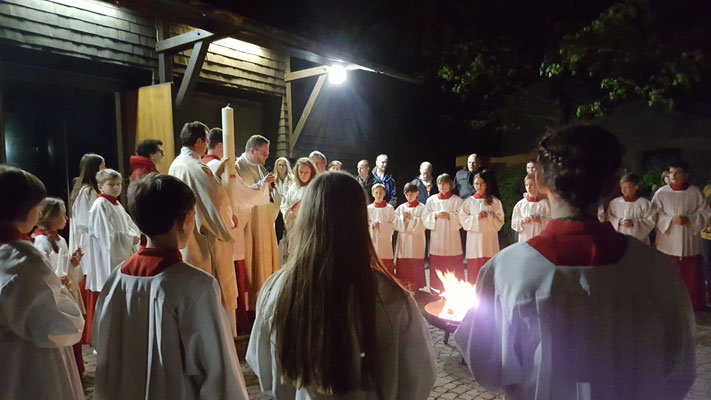 Wie jedes Jahr, bereitete unser Stamm auch dieses Mal das Osterfeuer für die Osternacht in Sankt Pius vor. Vor der Messe, wird das Feuer geweiht und die Osterkerze feierlich daran entzündet. Nach dem Gottesdienst stehen viele gerne noch zum Aufwärmen und Reden herum und genießen das Feuer.